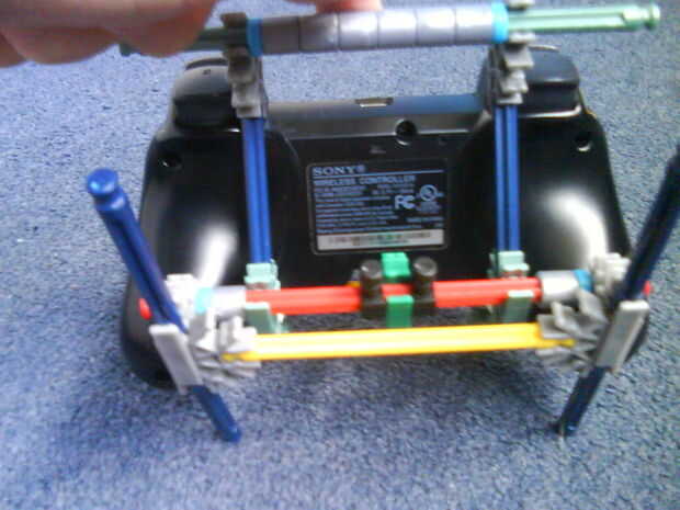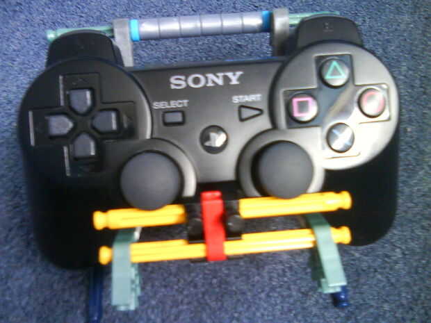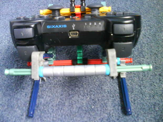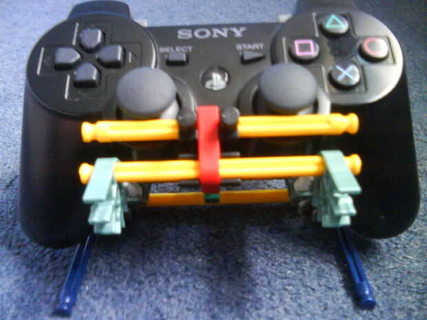 aquí es un soporte de controlador de Knex PS3 que hice. Es muy simple y no utiliza muchas piezas, lo que significa que se puede hacer 2, 3, 4 y aún más veces. Obviamente dependiendo de cuántos controladores tienes. Tiene fácil acceso al puerto USB para la carga y el soporte todo es pequeño y compacto.