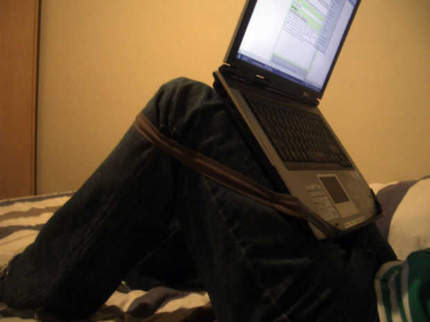 Sólo funciona si se sienta como yo en el sofá, que se desplomó nuevamente con los pies descansando sobre la mesa...