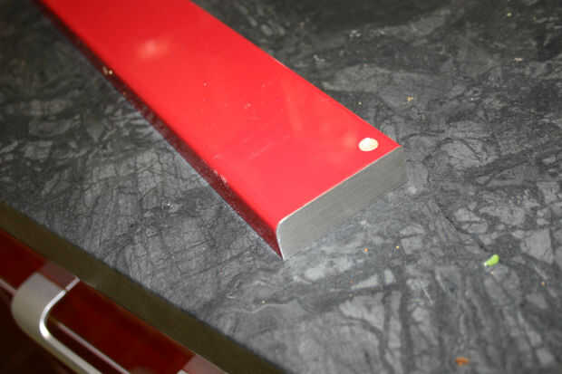 Con una amoladora y un archivo yo he adaptado la hoja a las dimensiones de la repisa.