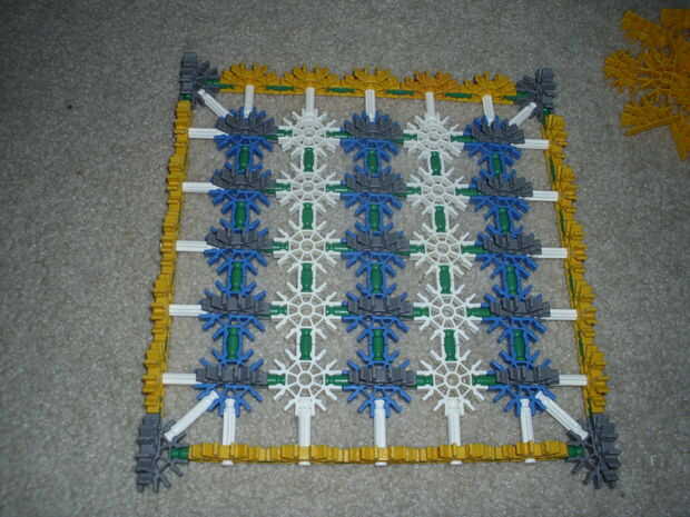 Construir 2 de los 5 amarillos y 6 verdes y sujete a los otros 2 bordes.