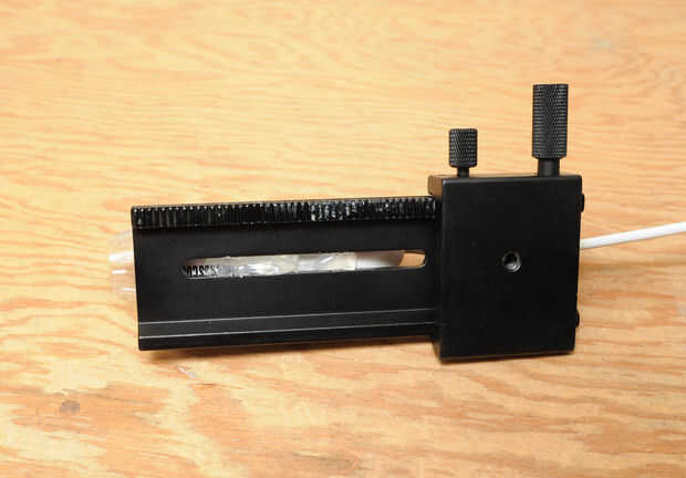 A pesar de que el cuerpo del microscopio es esencialmente cigarro compartido, el segmento de justo detrás de la perilla de enfoque es cilíndrico. Alinee esta porción en la ranura que se extiende a lo largo del riel de enfoque. Celebración de las dos piezas juntas en esta posición, darles la vuelta y squirt caliente derretimiento pegamento en la ranura de la parte posterior. Utilice el pegamento con moderación, la ranura de relleno pero no añadir tanta cola ti se extiende por encima de la ranura. Sujetar firmemente hasta que el pegamento se endurezca.