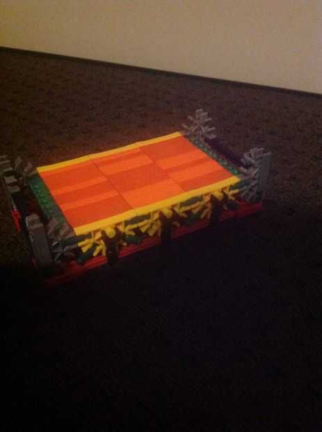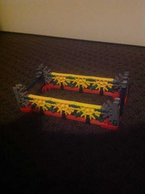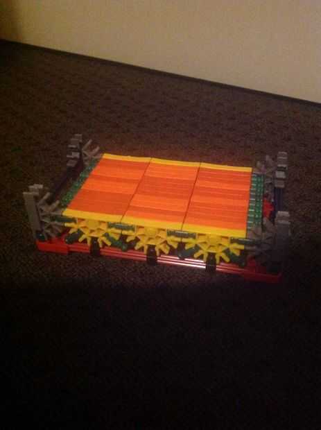 1 colocar todas las barras amarillas lanzó todos los conectores naranja para hacer la capa. 2 reunir la base y el cuerpo. 3 armar base y el cuerpo como tal. 4 conectar la capa con la base y el cuerpo. 5 añadir tres Y conectores en la parte posterior.
