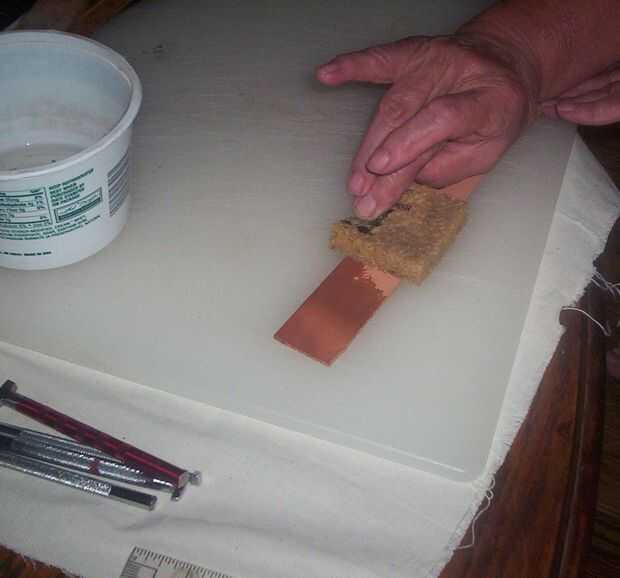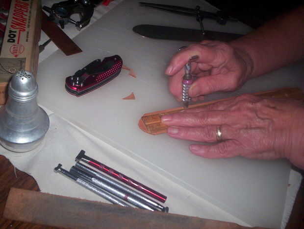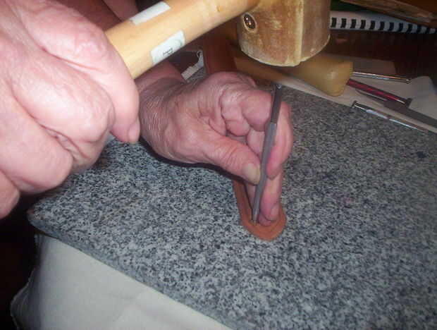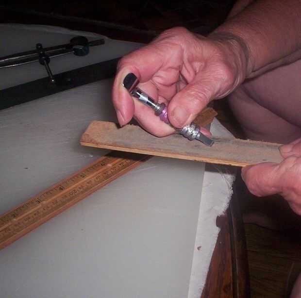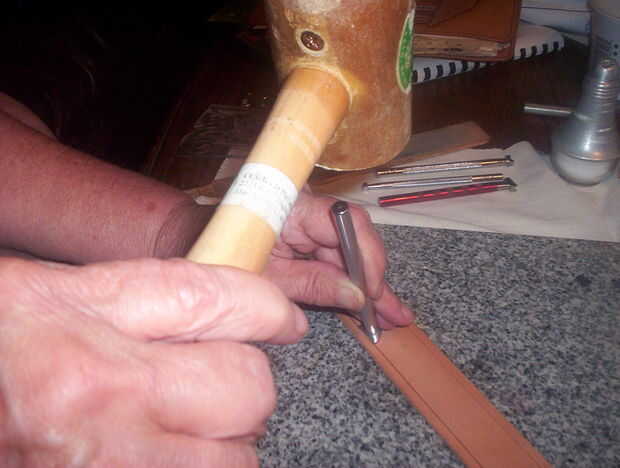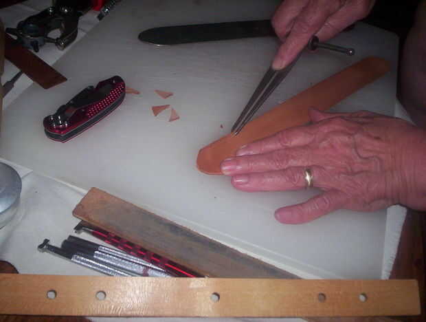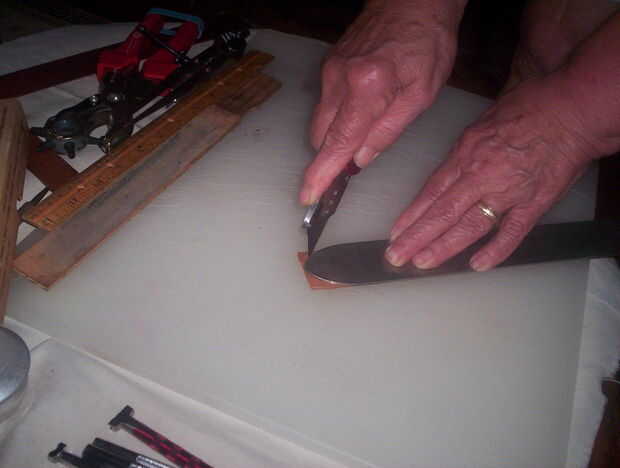 Tomar el cuchillo del eslabón giratorio y la regla y cortar los tramos rectos de las líneas de trazado. Final de la mano libre de extremos redondeados con el cuchillo.