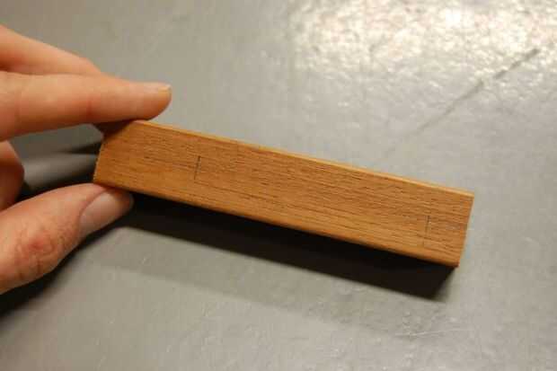 Para una mirada agradable y equilibrada, coloqué la muesca de 2cm del extremo. En el gran stand, la muesca es 3cm del extremo para un mejor soporte. Uso Plaza para asegurarse de que todo es cuadrado de carpintero, de lo contrario no encaja correctamente. También asegúrese de que todo se mide precisamente, o no se ajusta. Tómese su tiempo cuando usted mida todo para obtener buenos resultados cuando se corta.