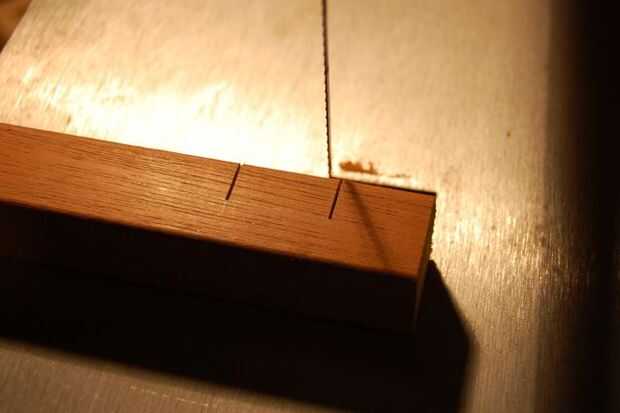 También puede hacerlo con una sierra de marquetería, pero es más difícil para conseguir un corte perfecto. También es posible utilizar una sierra de marquetería o sierra de una cola de Milano para hacer cortes verticales, a continuación, utilice un cincel para cortar a través de la parte inferior. Asegúrese de que su cincel es agradable y fuerte evitar astilladuras.