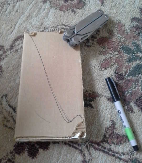 Doblar la solapa y parte por la mitad y dibujar un patrón como se muestra en la imagen. Se dibuja una línea angular que tiene un labio en la parte inferior. Usted puede hacer un poco de una curva en la parte inferior o superior a redondear las aristas o dibujar una simple forma de "L" que se titula a la izquierda.