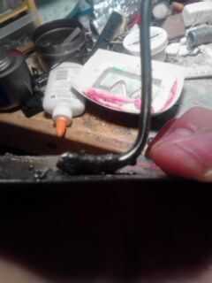 Si tienes novatos habilidades de soldadura este proceso será fácil. Suelde el codo de 1 pulgada del alambre a 3 1/2 x 3 1/2 pulgadas pedazo de hoja. La siguiente soldadura se unirá a la curva de 3 pulgadas de alambre en el extremo superior, lejos del spicket o agujero en el crisol, dar una ligera inclinación de la posible cera mejor. Una característica opcional que encuentro muy útil es un pedazo de hoja doblado en V para actuar como un troph enviar la cera lejos de sterno para facilidad de uso. La mayoría de estas conexiones puede ser sustituido con tuercas y tornillos si es necesario, han de soldadura es más fácil y debe ser utilizada para crear este soporte.