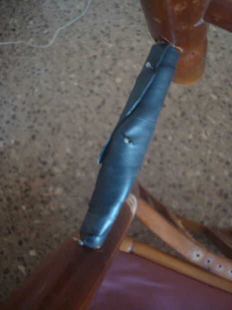 descubrí que la madera en madera contacto con la guitarra y la silla soporta dio lugar a un montón de diapositivas.  Para que una llanta de bicicleta práctico vino en la mano.  Envuelva alrededor de la ayuda y la tachuela en la parte inferior, asegurándose de que los clavos no pueden rayar la guitarra.