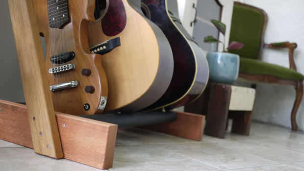 Nos mudamos de casa hace un año y medio y, debido a la falta de armarios o de almacenamiento de información, nuestra solución para las guitarras era dejarlos apilados en sus casos al lado de la cama. Aparte de ser una monstruosidad épica en el salón, también significaba que era una gran molestia cada vez que queríamos arrancar algunas canciones.