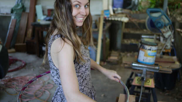 Además, el aro del hula me dio apenas la cantidad correcta de la curva de mis líneas de corte de la plantilla en.