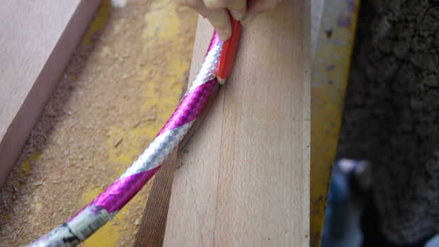 Paso 1: Herramientas y materiales 1. 3 1/2' a 4' longitudes de 1 x 22. pegamento de madera3. Dremel4. Sierra de mano5. lápiz para marcar6. bloque de papel de lijaPaso 2: Diseñar la forma Este soporte consta de 4 piezas de madera. Tanto de las piernas