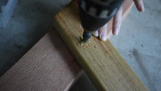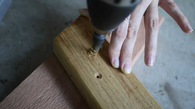 Para asegurar que el soporte fue realmente estable, usé tres tornillos de acero inoxidable a ambos lados, corriendo hacia abajo en un ángulo para evitar que la madera partir.