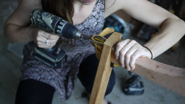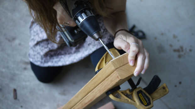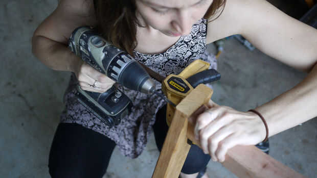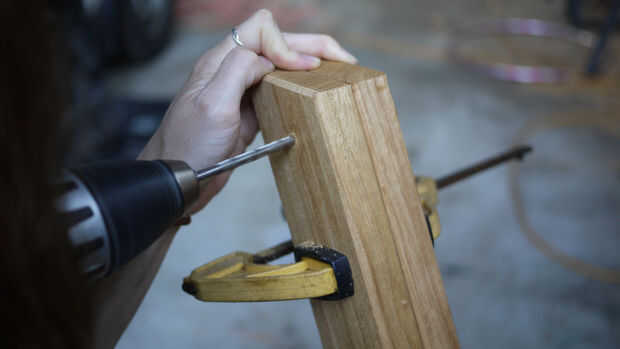 Hacer ejercicio en el centro de la pieza de puente a sentarnos contra las piezas verticales y, utilizando una pinza, perfore un agujero a través de dos piezas verticales al mismo tiempo, asegurarse de que estén en exactamente la misma altura.