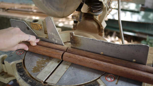 Las varillas son kwila espiga - kwila es una madera muy fuerte y significaba que la base no inclinarse por la pista. Los agujeros que había perforado en los pies de la base miden 25mm de profundidad y tan sólo agregó que en el ancho del soporte y corte a la longitud.
