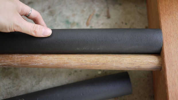Para las camas de espuma sobre las varillas, compré algunos jflex de mi Bunnings local (se utiliza para cubrir tuberías que necesitan aislarse generalmente). Cortarlo demasiado para asegurar un ajuste apretado un poco y no dejar ninguna madera expuesta cada lado 10mm.