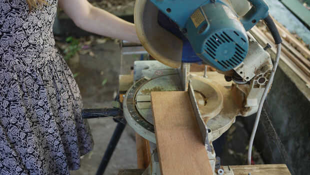 Elegí algunas madera 2 x 4 que tenía para los pies base y cortarlos ambos para 500mm. La gota es el amor de mi vida haciendo cosas, por lo que verás mucho, sin embargo cualquier herramienta de corte va a hacer - no tiene que ser perfecto.