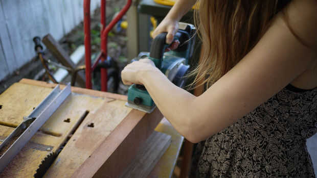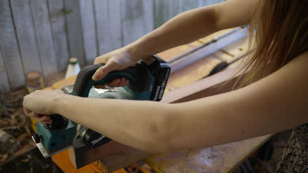 La 2 x 4 que estaba usando era muy ripply y necesita un buen lijado. Porque soy perezoso y odio lijado, opté por usar un cepillo para aplanar y Sobrehilar todos los bordes. Si usted es menos vago que yo y ganas de invertir mucho tiempo en lijar, funciona bien también.