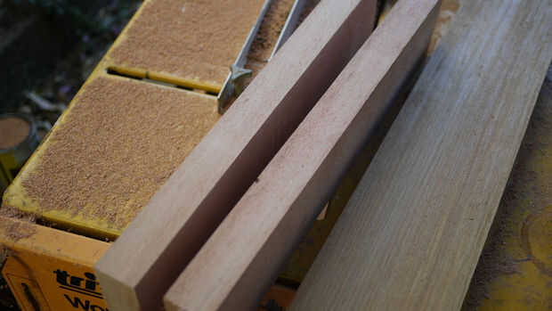 Corté mis pies 500 mm de largo. Compruebe que los extremos son cuadrados y Sobrehilar antes cortar madera a la longitud.