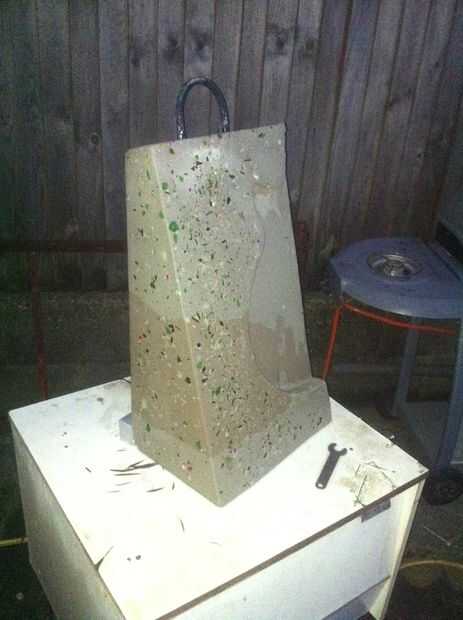 un soporte de guitarra hecho principalmente de hormigón. Fue el resultado de un taller concreto en mi escuela. El concreto adopta la guitarra con un relleno de espuma protectora.El molde fue hecho a mano con madera del mdf.Sin embargo es una gran bes