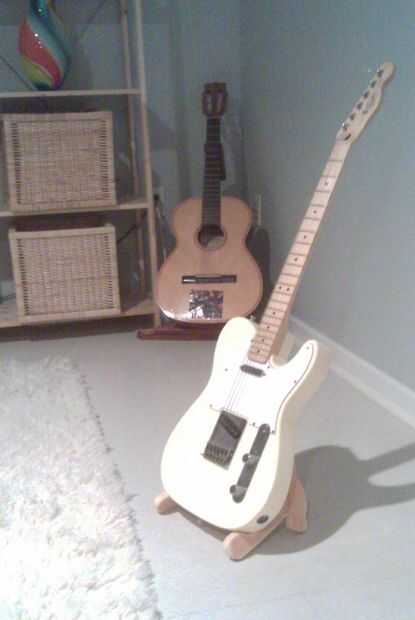 Nos mudamos de casa hace un año y medio y, debido a la falta de armarios o de almacenamiento de información, nuestra solución para las guitarras era dejarlos apilados en sus casos al lado de la cama. Aparte de ser una monstruosidad épica en el salón,