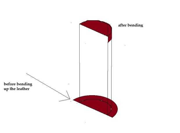 Asegúrese de que las rectas son coincidentes. la piel extra en la parte circular es doblada para arriba y pega allí