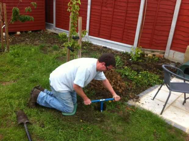 Guías ásperas son 1/3 la longitud del poste - tan en este caso unos 3 pies o 1m puesto que mi taladro va solamente 3 pies, 3 pies era.