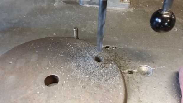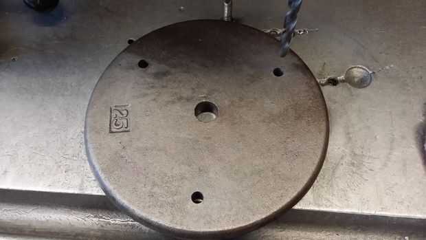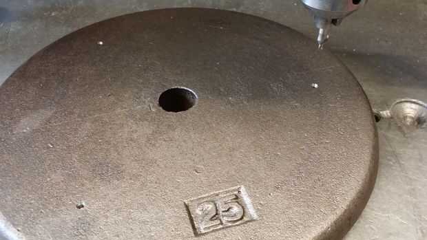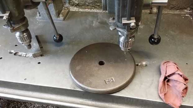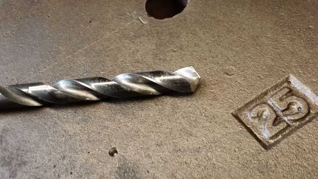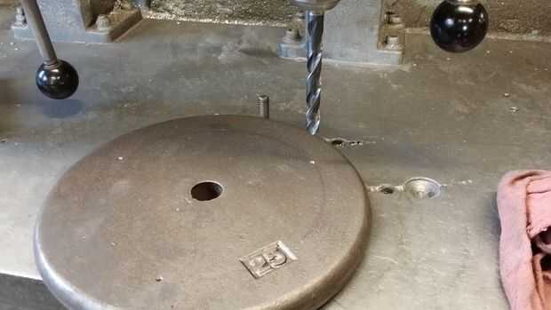 Lo primero es diseño de cuántos agujeros que desea perforar. Elegí tres. Estoy utilizando las cabezas de los pernos como pies. Si hay un piso incluso de las Naciones Unidas en tu tienda esta voluntad alow para sentarse sin balancearse hacia adelante y hacia atrás. Una vez que yout agujeros se puso a punzón. Centro de taladro los. Ahora perfore en 1/2" para la remoción del perno. Achaflane todos los agujeros.