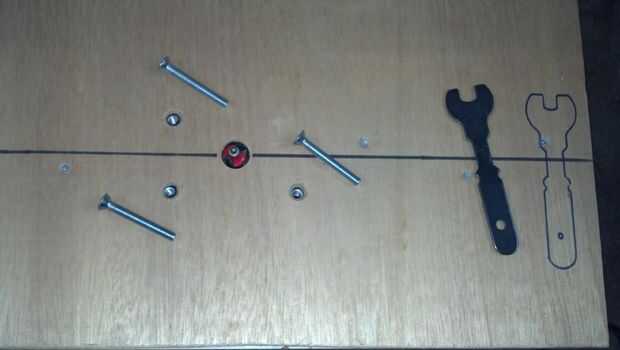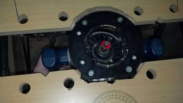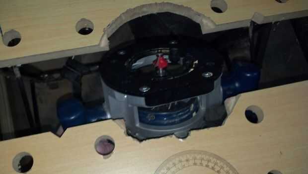 Compré algunos tornillos avellanados que caben los 3 orificios en la cara el router de montaje. Tomé un pedazo de 1/4" madera contrachapada tenía colocación alrededor y perforado y avellanado algunos agujeros para que coincida con del router. Tomé algunos trozos de 1 x 3" y rellenar el vacío en la mesa y les había atornillado en la parte inferior de la madera con tornillos de cabeza avellanada muy pequeño.