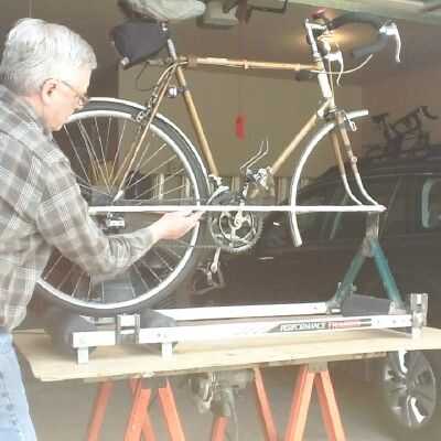 La rueda trasera debe póngase en contacto con los rodillos traseros al mismo tiempo, o muy cercano. Necesitaba saber donde vendrían los extremos de la horquilla cuando en los rodillos.