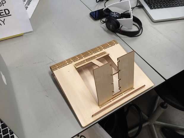 8. fijar el doblez al insertar la otra pieza de madera en las ranuras