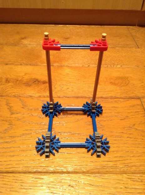 necesita...palillos:10 blancos4 azul4 rojos3 amarillos10 verdesConectores:6 púrpura2 blues6 amarillos16 rojos2 verdes4 grisesy dos ruedas (opcionales)Paso 1: hacer los lados Hacer dos de estos...Paso 2: hacer el respaldo hacer estoPaso 3: obtener est