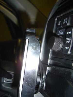 utiliza una amoladora para cortar una ranura ancha en forma de V en la parte posterior de la montura y atornillados para el panel del cuerpo del radio con un perno elevador.