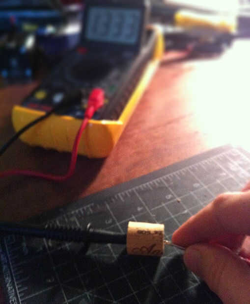 Ahora la pila está lista para probar y no rodando. Para baterías de corte una ranura en un corcho de champán e insertarlos. Hay cualquier número de maneras de mejorar en esto así que espero que proporciona inspiración y resulta útil en un apuro como lo ha hecho para mí.