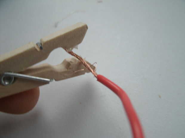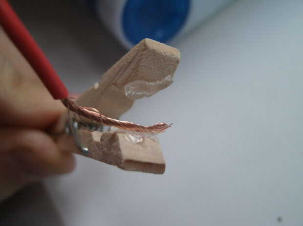 Pegar el alambre a la parte interna inferior de la pinza para la ropa.