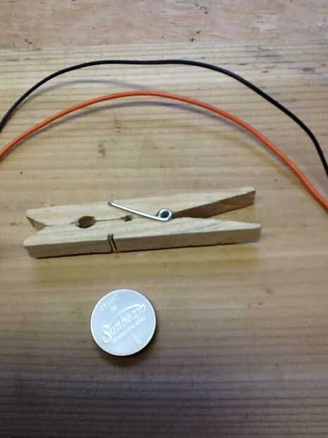 Necesita una pinza para la ropa, algunos conexión cables rojo y negro sería mejor denotar el negativo y positivo. Y por supuesto, una pila de botón. Utilicé uno que pone a 3 voltios es el voltaje ideal para LED