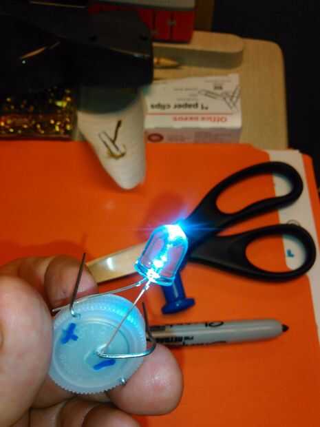 Así que me lancé a crear elementos componente re-propositivo cosas que normalmente se encuentran en la basura. Este sostenedor de batería está hecho de elementos comunes (tapa de la botella, sujetador de papel y pegamento). La ventaja del salón de clases es que estoy enseñando a mis hijos Cómo reutilizar, renovar y reciclar y no solo hablar de un plan de lección.