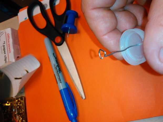Doblar el clip plana así que puede estar en el centro de la tapa.