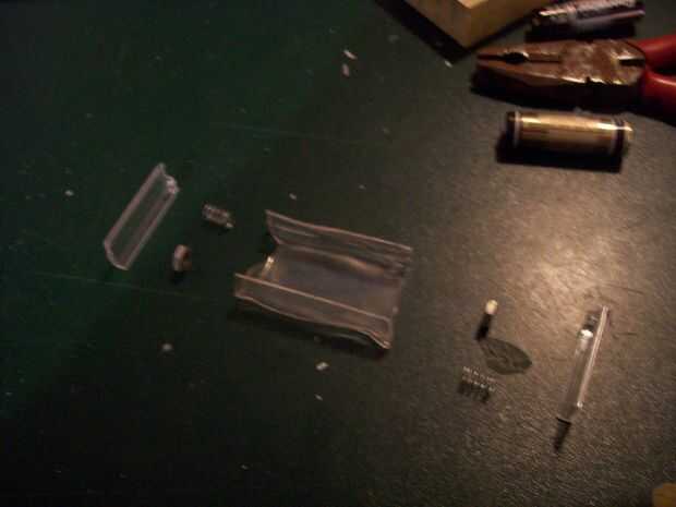 Doblar un extremo de cada primavera, por lo que puede ser alimentado a través de la plástica. Doblar un poco el otro extremo en aumentar la superficie en contacto con la batería. Introducir el extremo largo del cada primavera a través del orificio en el plástico. Fije el resorte en el interior con un pequeño toque de pegamento caliente. Enrolle los cables alrededor de los extremos del resorte y de la soldadura.