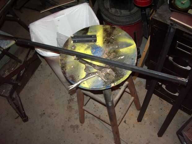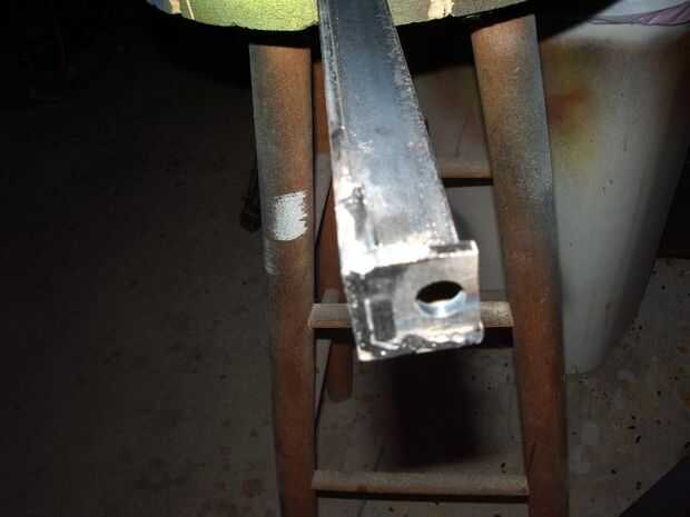 Después de cortar cada pierna a la longitud, he soldado con autógena un pedazo de chatarra a un extremo y perforados para el montaje de la rueda (Foto 2).