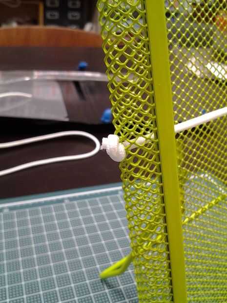 Lo primero fue que necesitaba una manera de hacer una 'cadena' para colgar cosas que no cabrían en pequeños ganchos fácilmente. Tuve alguna cadena 'elástica' que sirvieron el propósito excelente. Había exprimido por los agujeros y lo ató apagado.