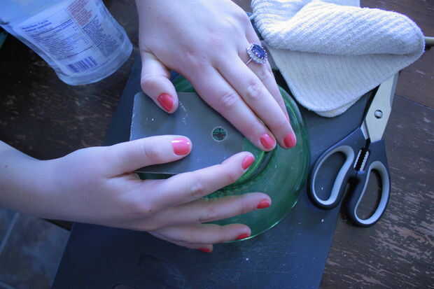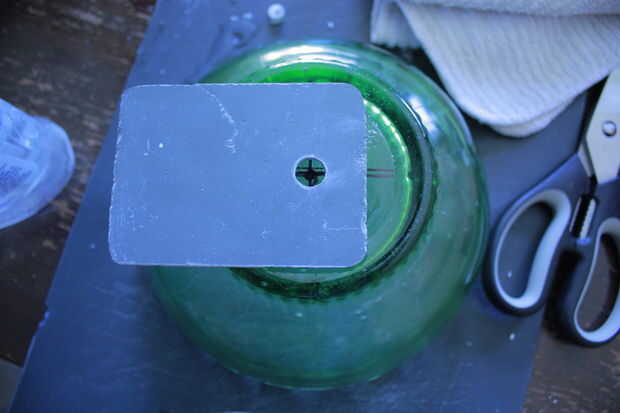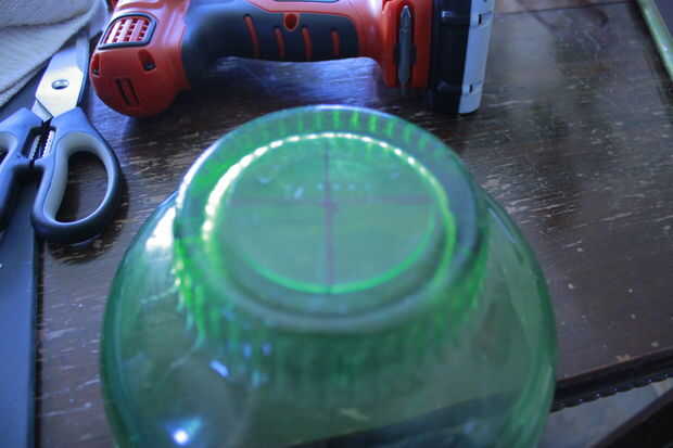 Así que ahora para la parte más difícil. Más difícil de hacer bien todos modos. Empezar por tratar de dibujar una X en el tazón de fuente/taza/la placa de la parte inferior. Puede probar y utilizar una regla y pivote en la parte inferior para ver cual es la más larga y que le dará una línea bastante recta. Una vez que ha encontrado el centro (o lo que estás cómodo en tu mente como dice es el centro) colocar a la guía sobre el agujero. Si usted no tiene ninguna guía entonces usted fácilmente puede hacer uno de una pieza resistente de plástico o madera y perforar un agujero del tamaño de la broca. Sosteniendo esta guía por voluntad probablemente tomar 2 manos y un pulgar (3 manos básicamente).