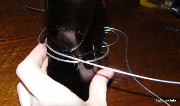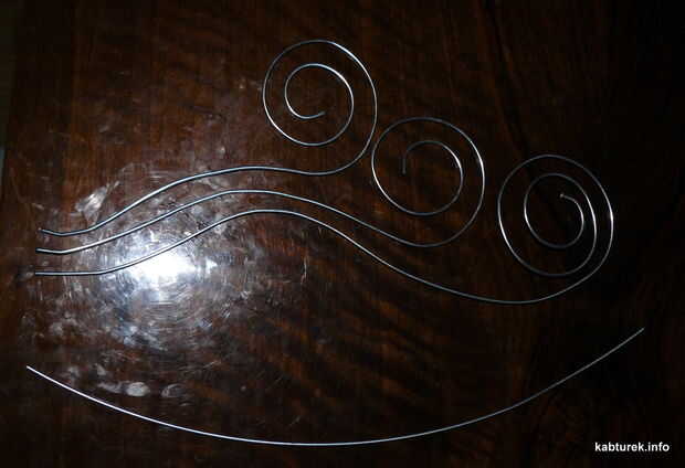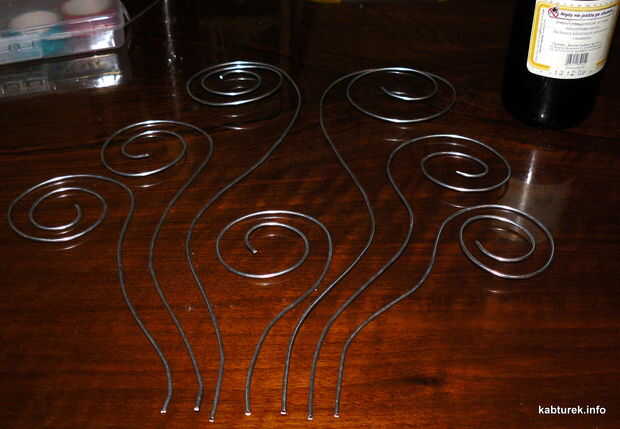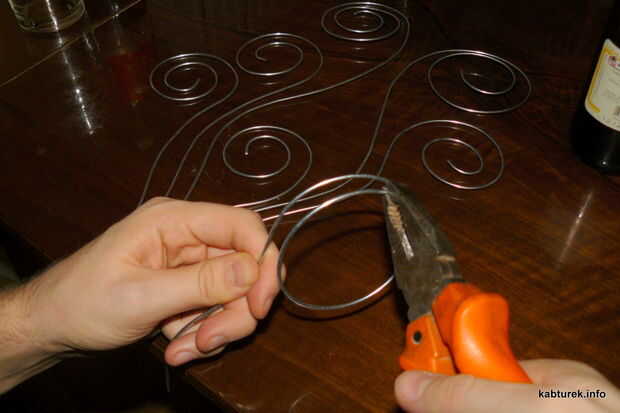 Para círculos apretados (como en los extremos de "la onda") a un objeto redondo (utiliza una botella de cerveza vacía ;-) y doblar el alambre alrededor de la botella, empujando con los dedos.