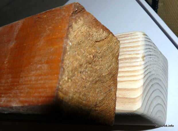 Tuve un palo de madera de 60cm de una valla. Que he sacado a un amigo que utiliza una motosierra (¡ sic!) para cortar en pedazos. No era realmente la herramienta correcta para el trabajo (bordes afilados, etc.) pero me pareció la forma más rápida de hacerlo (y no al final - se hizo una pesadilla de lijado).