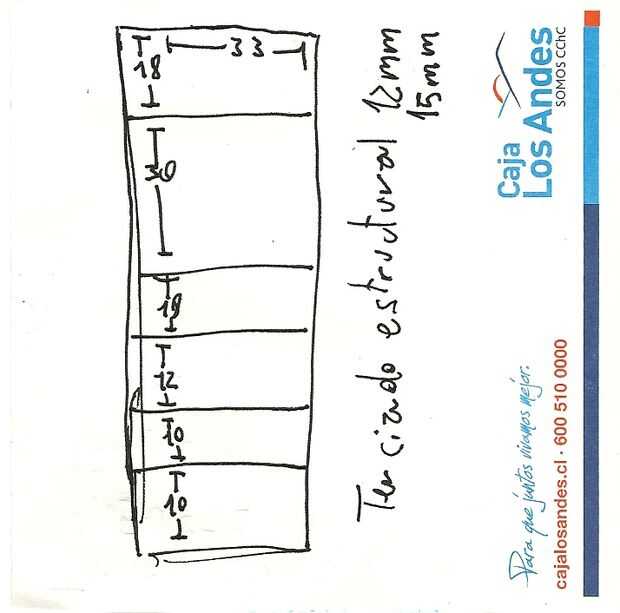 Por lo que ponen los divisores y la sección como el bosquejo de la parte superior hasta la parte inferior, el primero de ellos es de 18 centímetros, y luego 30 cm, otra vez 18 cm, 12cm y los últimos dos de 10 cm.