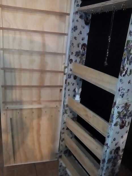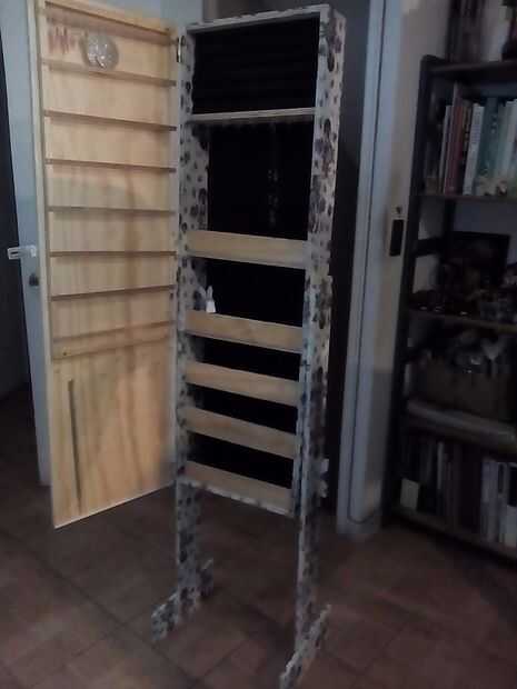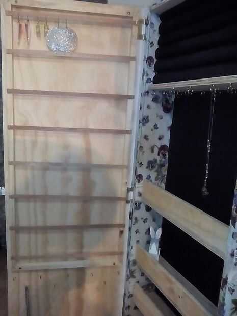 En interior de la puerta tiene un marco con palo de varios donde puede ser utilizado para colgar pendientes