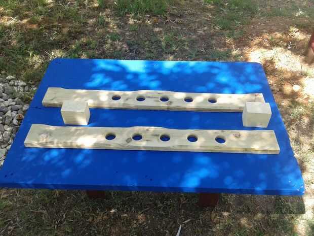 Usé las vigas de madera conocida plataforma para crear tándem vertical y horizontal. Agujeros de aligeran la estructura y el peso; Además le brindan un aspecto moderno e industrial.