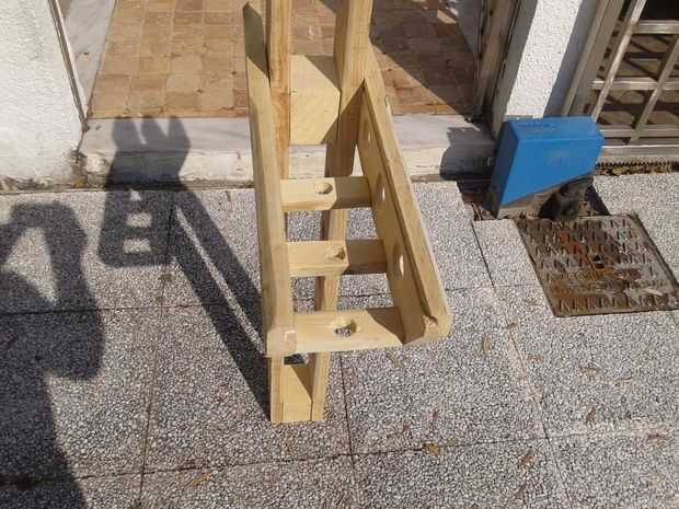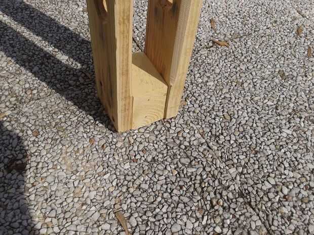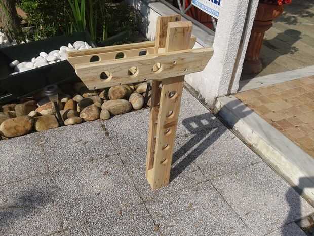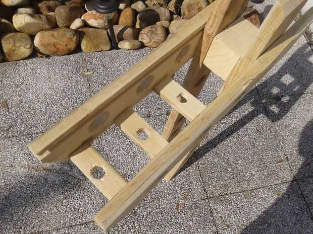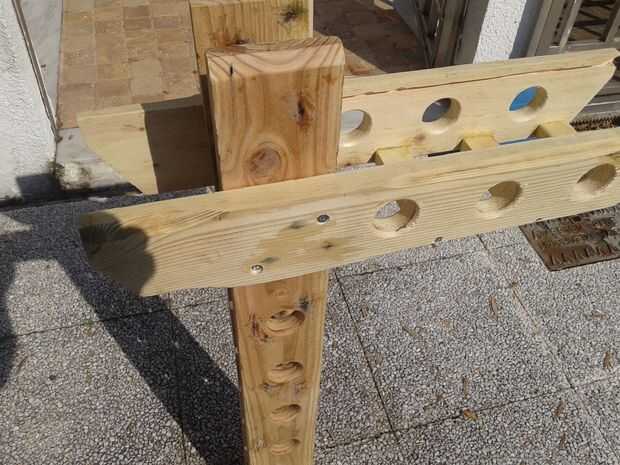 Altura de la estructura es de 90cm y ancho 50cm, mientras que el ancho de las vigas es de 10 cm. distancia entre también de 10cm, mantenido por un cubo de madera de la plataforma base y el grosor de vigas 2cm.