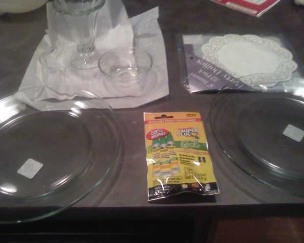 Paso 1: Reunir todos sus materiales: Se necesita:Tres discos de vinilo. Deben ser de diferentes tamaños, así que necesitarás un 78, 33 1/2 y 45. Encontré minas en el ejército de salvación para $.50 un pedazo.Centro de mesa soporte de la Magdalena. He