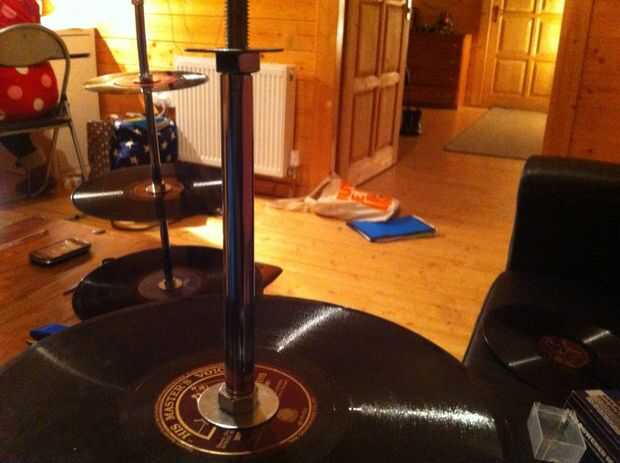 Ahora tienes tu stand! Así que la última cosa que necesita hacer es hacer no tambaleante por lo que cualquiera puede pegar unos pies que. Pegue un lazy Susan gira alrededor o como lo hice. Colocarlo boca abajo sobre la tapa de una lata de galletas!