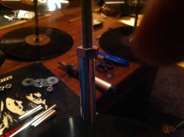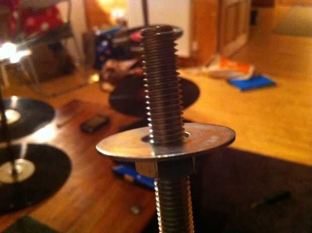 Hilo de rosca abajo otra tuerca en la parte superior de la cubierta del tubo. Luego una arandela, su registro de tamaño medio. Otra arandela y perno de otro. Y apriete.